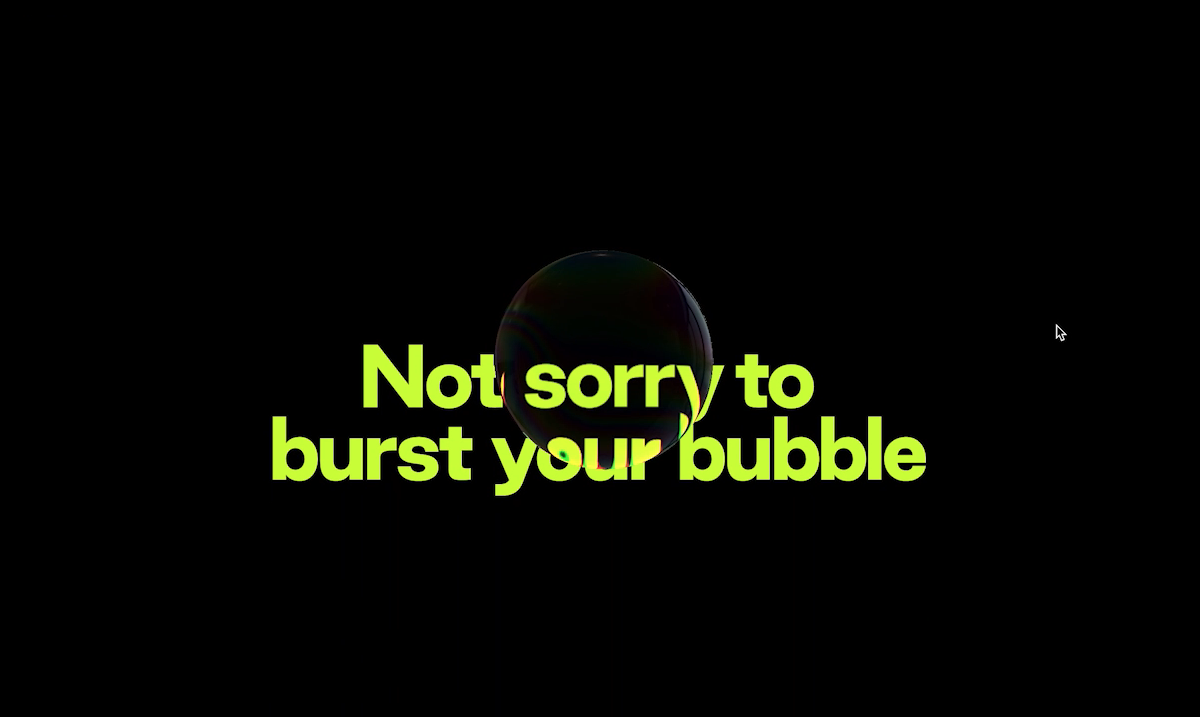 Not Sorry To Burst Your Bubble was a branding and web design project to launch Rouser. It was intended to attract high-profile collaborators, and showcase future initiatives and experiments.